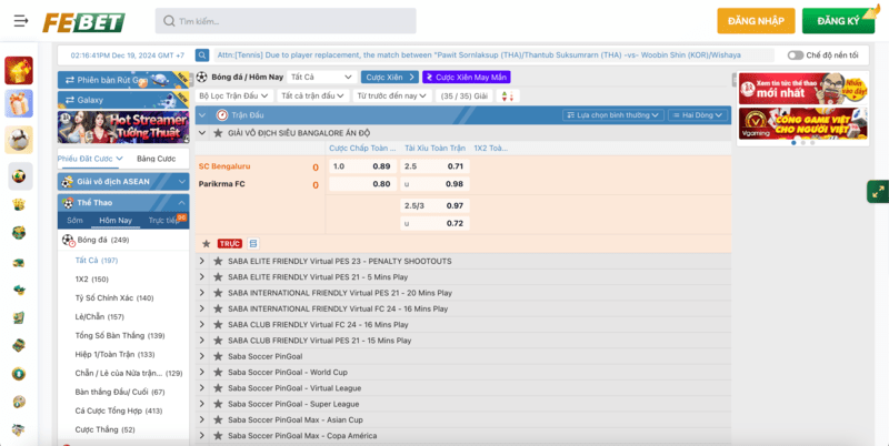 - SABA Virtual Sports: Thể thao ảo với các trận đấu nhanh, giúp bạn tham gia mọi lúc, mọi nơi.