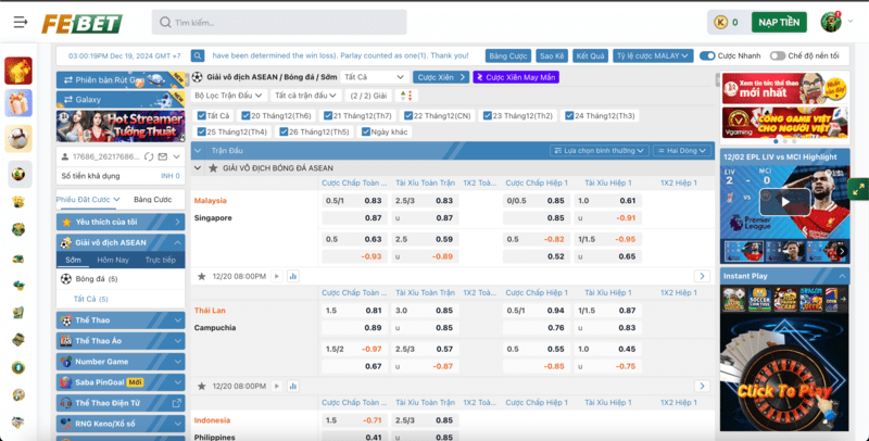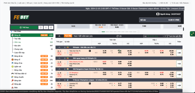 FEBET cung cấp tỷ lệ cược hấp dẫn và minh bạch, được cập nhật liên tục theo diễn biến trận đấu. Bạn có thể lựa chọn các kèo cược như kèo châu Á, châu Âu, tài xỉu và nhiều hơn nữa.